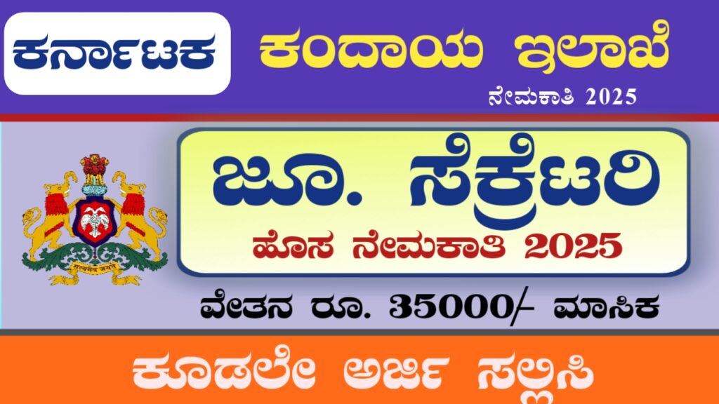 ಕರ್ನಾಟಕ ಕಂದಾಯ ಇಲಾಖೆಯಲ್ಲಿ ಖಾಲಿ ಇರುವ ಜೂ. ಸೆಕ್ರೆಟರಿ ಹುದ್ದೆಗಳ ಭರ್ತಿಗೆ ಅರ್ಜಿ ಆಹ್ವಾನ: Revenue Dept. Junior Secretary Jobs 2025