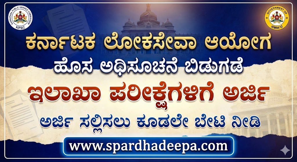ಕೆಪಿಎಸ್‌ಸಿ 2026ನೇ ಸಾಲಿನ ಪ್ರಥಮ ಅಧಿವೇಶನದ ಇಲಾಖಾ ಪರೀಕ್ಷೆಗಳ ಅಧಿಸೂಚನೆ ಪ್ರಕಟ: ಅರ್ಜಿ ಸಲ್ಲಿಕೆ, ಅರ್ಹತೆ ಮತ್ತು ಪರೀಕ್ಷಾ ವಿಧಾನದ ಸಂಪೂರ್ಣ ಮಾಹಿತಿ: KPSC Department Exam 2026 Read Post »