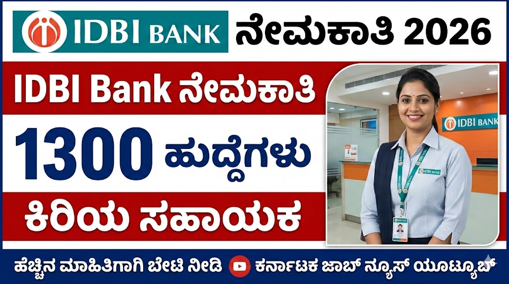 ಐಡಿಬಿಐ ಬ್ಯಾಂಕ್ ನೇಮಕಾತಿ 2026: ಒಟ್ಟು 1300 ಅಸಿಸ್ಟೆಂಟ್ ಮ್ಯಾನೇಜರ್ ಮತ್ತು ಜೂನಿಯರ್ ಅಸಿಸ್ಟೆಂಟ್ ಮ್ಯಾನೇಜರ್ ಹುದ್ದೆಗಳಿಗೆ ಅರ್ಜಿ ಆಹ್ವಾನ: IDBI 1300 Vacancies Recruitment 2026